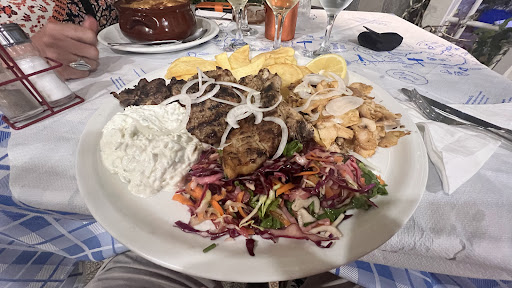 Read moreOf all the Tavernas we tasted during our week long stay in the town this was unfortunately the least tasty. Gyros was Ice-Cold (sadly it was our last day and we were on a hurry to catch our flight. Therefore I could not take the offer to get my dish redone). Also the ambience of the place felt a little weird, especially the inside (we did not sit there, however you need to go in to use the toilet or pay). Also from our table we could hear the music from this place as well as from the taverna next door. Not necessarily their fault, however still quite annoying. The waiter was really nice, free fruit and Raki were provided...