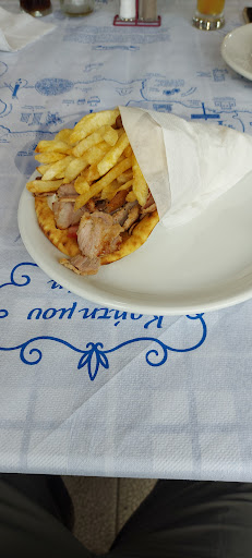 Read moreCalled in for lunch after a walk on a very wet day. Choice of snack menu or full restaurant menu. We were a party of 3 adults and 2 children and mainly chose from the snack menu. We had pitta gyros, dakos, 2 cheese toasties with chips, chips and to takeaway chips and garlic bread for a teenager who had stayed home. Drinks were large beer, 2 pineapple juice, one orange juice and a coke. The owner, sorry didn't get his name, is an absolute legend, very funny and very attentive. To close we were given small bottles of shots, one alcoholic and one not, for the kids, chocolate and 2 baklava. We are only here for one week and the choice of restaurants is immense in Koufouloutari but we hope to visit again before we leave. Would definitely recommend...