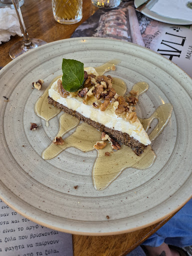 From the homemade ice tea and lemonade over the stuffed breaded mushrooms with truffel mayonnaise, the homemade bread from the wood oven with their homemade hummus, tzaziki and feta spreads all the way to the stuffed pork on mashed potatoes and glazed vegetables with the best sauce to pair it with, the experience was just well rounded at every turn! My girlfriend had the salmon with strawberry, which sounded slightly weird at first, but also intriguing and unique enough to try it. The salmon was a straight 10/10. The strawberry gravylike sauce was an usual but really delicious pairing for it! In the end wr indulged even further with some cretan cheesecake which was just the cherry on top of our evening. The base made from locally sourced carob and the creme from a local soft cheese called mizithra topped with walnuts and mild honey. It was a perfect cretan twist on NY style cheesecake. Thank you to the staff and chefs for this experience. From a happy and more than well fed...