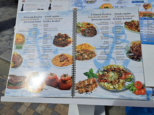 When i saw the menu for this restaurant i knew i had to eat here. I actually wanted a seat in the back where you sit just next to the beach with a great view on the waves, unfortunatley all those tables were taken, even though it was already a late time to have dinner and the biggest rush had passed, wich i totally understand, who wouldn't want to eat with a view like that. I sat down on another table but we were able to move as soon as a couple left wich was no problem for the waiter at all. I ordered a fresh pineapple juice and decided to try the greek pasta with the schrimps wich was delicious. When my order came the waiter asked me if i wanted cheese to top the dish, i rarely say no to cheese and it was so good. The portion was more than enough for me. I really enjoyed the view while eating, it added a relaxed feeling to my dinner. When i asked the waiter to pay he nodded his head and i assumed he was going to come to our table so i could pay, instead he brought us a plate with a nice scoop of ice cream and some brownie pieces, on the house. As we were enjoying this he also brought us a small canister of Raki and 2 shot glasses, on the house. I usually don't drink a lot of alcohol but i did dunk down a shot of the Greek alcoholic beverage. The waiter said that when we were ready to leave we could go pay inside. I thought maybe they would add a little something for the 'on the house' items but they did not. Maybe they were generous because we were there before the actual summer season started so i don't know if they do this on a regular base. This sure is a restaurant i would recommend, and would gladly go again if i had the...