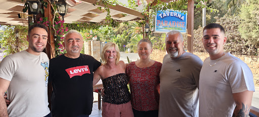 Paradise is minutes from despina apartments where we stayed and on the way to the beach, so visited for breakfast and evening meals several times, the couple who own it and their son are brilliant hosts, very friendly and helpful and speak very good english, the English breakfast had 2 eggs ,1 bacon,1 sausage ,beans ,tomato slices, 2 toast and marmalade, with an orange drink, and a mug of tea, all for €9 each, we also tried evening meals, that varied from €9 to €18 ,with various sea food and steaks on offer too,at various higher prices, my wife tried steak salad with blue cheese dressing, and enjoyed it, I had swordfish steak with salad and home made chips, loved it, drinks are competitively priced too, bottle of 500ml heineken €4, local pint of mythos €3-50, I'm ambulant disabled so managed to use the toilets that are set back from the restaurant, there are 3 steps to both the wc's, but the side eating area we used is on ground level, there is one step to the next level with plenty more tables and bar area, it's well worth a visit, oh and you will be offered various types of shots, raki, ouzo, and a lemon ouzo? forget the name, after your meal, all free, my gums have never tingled so much, even after listerin haha, it's a lovely place to visit ,and relax and...