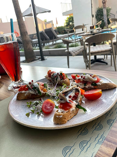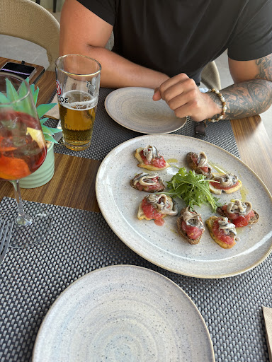 Read moreWe highly recommend Riviera restaurant and cocktail bar. The terrace is splendid, you can seat in the shade or under the sun, there is a direct view on the sea. The pool is beautiful. Apostolis and Ermis were always welcoming and very caring with us. We enjoyed delicious cocktails (with or without alcohol), local wine, coffee as well as some tasty food for lunch or diner. They organise special bbq nights (lamb, fish), what a feast! Our son has food allergies and the chef Dimitri adapted the receipes so we could relax. You can stay there for the day, for a meal or apero or even better spend your holidays at the Riviera...