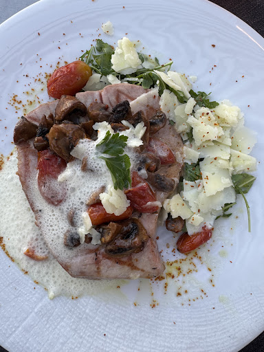 Read moreThe service, live traditional guitar, and atmosphere was lovely. We ordered the chicken kleftico which was just a chicken breast. We also ordered the rib-eye and it was beautifully presented but the taste was weird. Unlike any other steak I had in my life. Maybe it had a dusting of some spice, it wasn't pure beef and salt flavor, but I certainly didn't rate it and wouldn't recommend. Go to a traditional taverna, spend less, eat better/more and you'll be much more impressed. The hotel staff will give you good recommendations. Don't let the 10%...