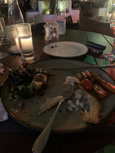 Appetizers they don’t give. So we’ve ordered for 12€ plate ONLY with bread, salad and olives! Then the main dish came and seasonal greens had a really bad bitter taste! And carrot ? Why the heck you put whole carrot in plate? Next to fish. And fish was also bad! So I couldn’t enjoy my food. For my BF we’ve ordered salmon with rise and it was so dry, like a desert!
