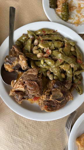 Mittag/Abendessen: Es stimmt, das nicht immer alle Gerichte auf der Speisekarte verfügbar sind (dort wo Preise hinter stehen, sind die Gerichte verfügbar). Dies ist aber dem Umstand geschuldet, dass Maria und Kosta, die Speisen frisch zubereiten und dementsprechend auf Qualität statt auf Quantität setzen. Der Geschmack unserer Gerichte war ausgezeichnet. Ich: Hausgemachte Moussaka und Rindfleischröllchen in Tomatensauce mit Pommes Frites Meine Frau: Frittierter Halloumi mit frischen grünen Bohnen in selbstgemachter Tomatensauce.