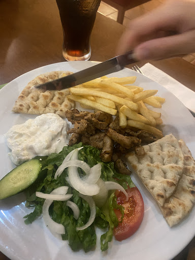 The photo is showing the pork gyros platter that we got. There is hardly any meat at all. This is extremely disappointing as we have been in Greece for 2 weeks and nearly all other pork gyros platter have 5 TIMES!!!! As many meat for the same price. We also got lamb chops which also had very little meat compared to other restaurants and other meals as well which weren’t outstanding.