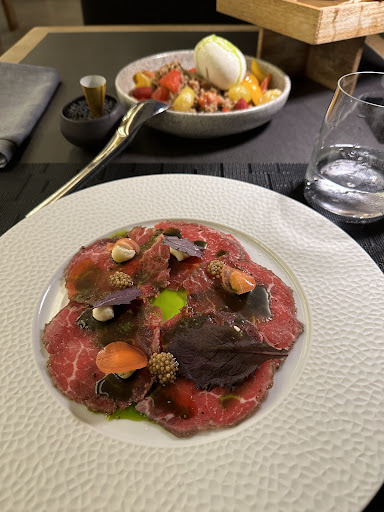 Read moreThe food here was phenomenal, the nicest tasting meal we had all holiday, in a really nice location. Some aspects of the service left room for improvement - my wife's starter was beef tartare which has a little theatrical preparation at the table, but my wife was in the bathroom when the starters came out. I asked if we could wait until she was back and was told it couldn't wait, or we could send the food back to the kitchen. I assume it was a food safety thing with the raw beef but I don't think the starters should have been brought out with one person not seated. Our glasses weren't always kept topped up then I got a bottle of wine taken out of my hand when I went to top it up myself, which I thought was a bit much. Felt like I was being told off. No cutlery for our main course as it was cleared away after starters, so we had to ask for more. The red wine was served chilled, we did question that and were told it was stored at 13-14C in the warmer months. Makes sense for longer term storage (I guess, not an expert) but I don't think it should be served so cold. These are all fairly minor quibbles, but for the price you would expect the service to...