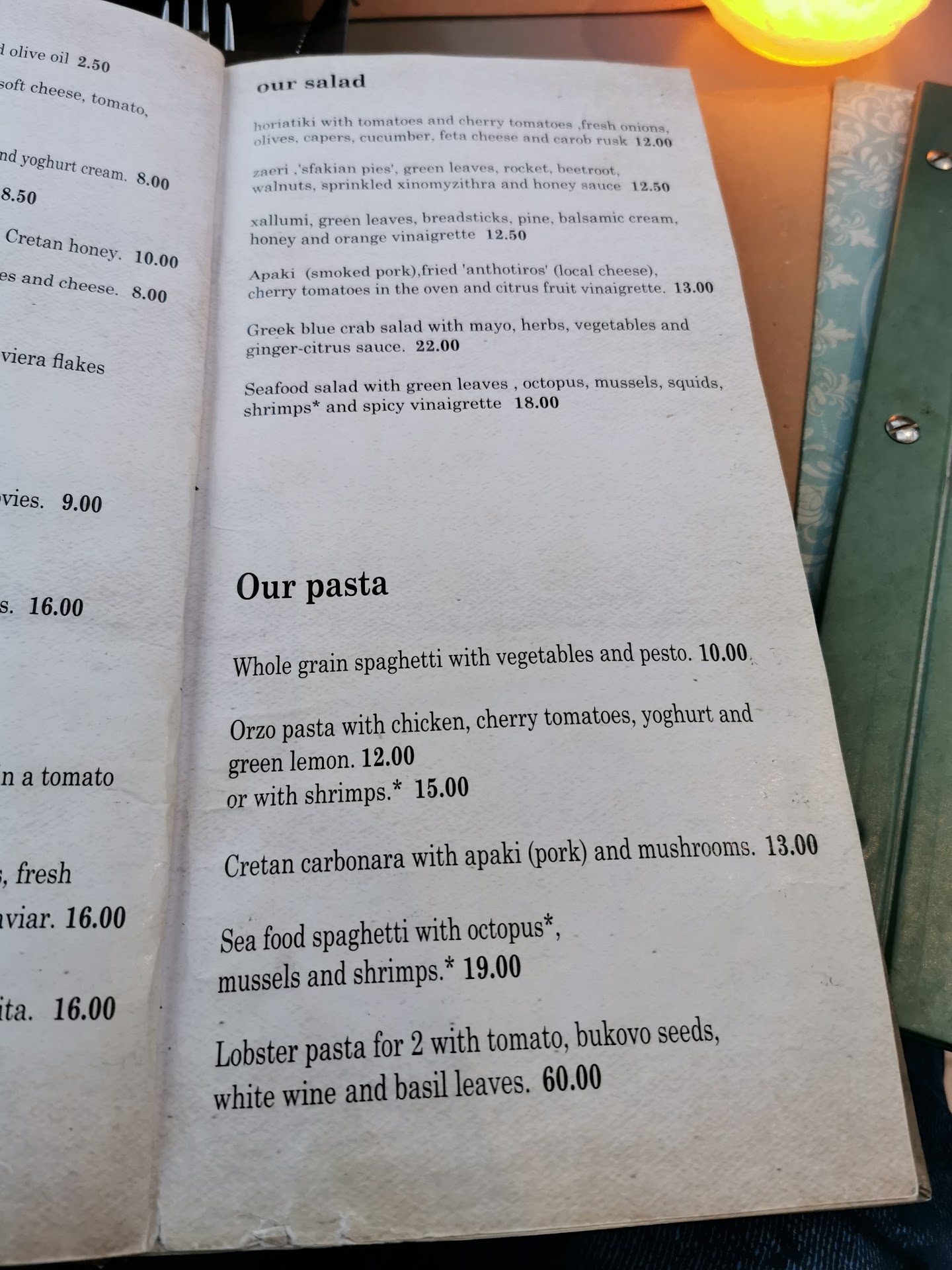 Read moreExcellent all round, amazing food, good friendly service and a lovely relaxing atmosphere. We shared cheese saganaki (local graviera cheese instead of feta or halloumi that is usually used for cheese saganaki) in honey and village sausages to start. The cheese saganaki was the best I've had, and the sausages full of flavour and a good portion; the combination of the sausages, cheese and the pita bread went well together. We both had the Cretan carbonara (without mushrooms), this was very good, with big slices of quality pork, and lots of it too! A good amount of sauce, creamy and not too rich, combined well with the linguine pasta. After asking for the bill some complimentary desserts where brought over, mini cheesecake style, with pistachio's sprinkled over; light and tasty. If you can, make sure you sit out the back by the water, the restaurant itself already has great decor and a good atmosphere, but sat by the water is even better, listening to the waves come in, with fantastic views of the harbour; we arrived around 7 just before the light went, and it was great seeing it light, and then changing to dark with all the lights nearby coming on. Some of the food is maybe a little more pricey than nearby restaurants, but the quality, setting and service makes it completely worth it, I wouldn't hesitate returning. A great...