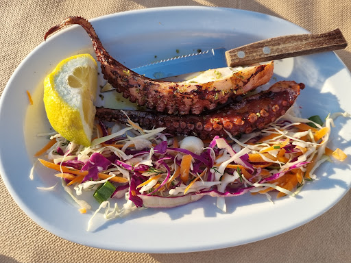Read moreGood grilled octopus, but shrimp pasta - huge portion without much taste (shrimp OK, but sauce/cheese so so). Staff first didn't pay much attention, then helped us to move to another table when they put down the umbrellas. For the same price, in Athenes, we got another level of experience....