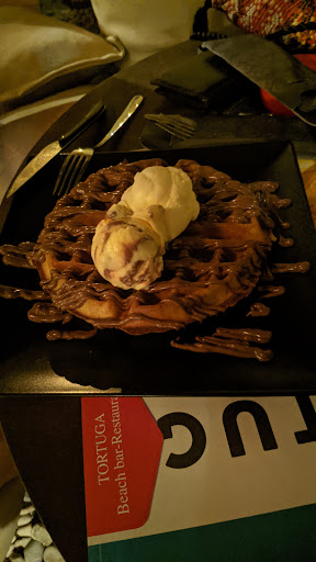 Stopped there for a coffee. We had out order on the tables in front of the store (not in the beach). We ordered 3 coffees and we the waitress served us with two plastic bottles of water (that we also paid) and no glasses for drinking water. Unfortunately not the best place to enjoy a coffee beside the beach...