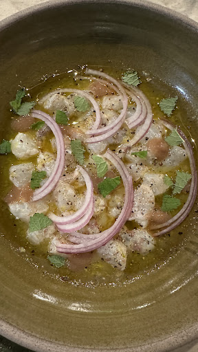 Food: missing a few dishes meant we had to choose from a smaller menu...which was a damp A4 printout, hard to desipher not because of its state but due to complex descriptions and included a section called 'all biddings accepted". Basically first come first served concept. Prices were astronomical - 17 euros for a tomato and basil salad...27 euros for a sardine and melon ceviche...Full stop here.
