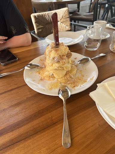 We had dinner at Veludo and it was by far the worst dinner we had in Mani. The experience started with disappointment as they brought us as a starter frozen square bread bites like the ones you have on cruise ships with a spicy watery feta cheese dip. That wasn’t really the “taste Mani” as advertised. When we challenged them about the bread and that Mani is so famous for the sourdough they said that there is no bakery in the village and that the Rd to Areopoli is dangerous for the staff to drive up and down every day to bring fresh bread in. We found that excuse really odd as other tavernas in the area have proper traditional bread