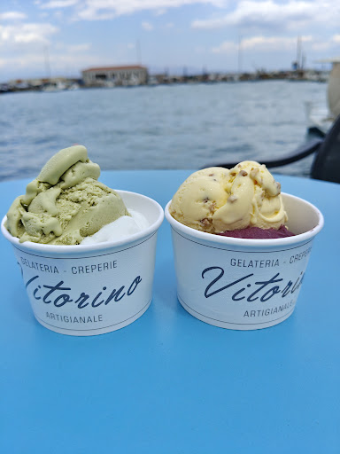 We were staying in Gytheion and wanted gelato after dinner, as 2 tourists are wont to do. We saw Vitorino across the street and decided to give it a try, expecting nothing more than the standard, basic, rather tasteless gelato from a mix. We were in for a delightful surprise, because Vitorino makes some of the best gelato I've ever tasted, and I was in Sicily last year. I'd put it up against that. Wonderful gelato. Friendly staff. Make sure to try the 2 special, local flavors: kaymaki (a sweet cream gelato) and another that has the flavors of baklava (honey, phyllo crust, etc.). One more reason to...