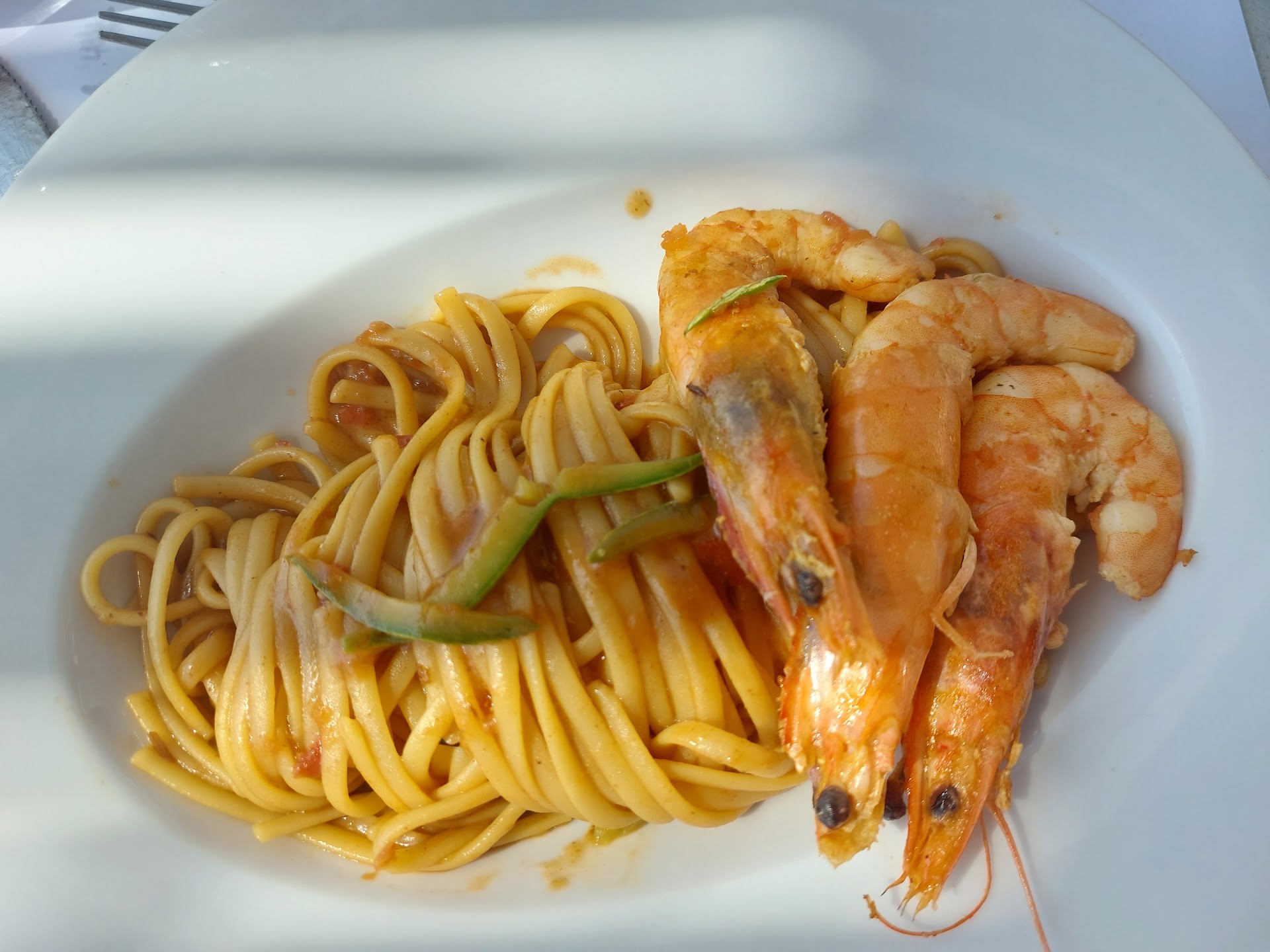 Read moreBuscamos un italiano porque los niños querian pizza despues de 1 semana solo comiendo griego, y desoyendo críticas ya que la mayoría hablaban de precio, elegimos este bonito restaurante en un emplazamiento privilegiado. Dicho esto, solo puedo recomendarlo para ir a hacer unas fotos. Empezando por el vino, la especialidad del lugar en teoría, un desastre absoluto... se supone que te lo ofrece el somelier, él la verdad fué encantador, como yo conducia solo pedimos una copa para mi marido y nos recomendó un shyrah. Nunca vimos la botella recomendada, el vino salió directamente en copa, a temperatura ambiente (en ese momento a 30 grados), quizá por eso a mí que solo lo probé me supo más a cabernet... el caso es que el mismo somelier en el momento de servirlo nos comentó que estaba "del tiempo" con lo que quizá un poco caliente y nos ofreció "icecubes", literalmente... Entonces aparte de parecernos razonable la duda sobre el vino y raro que no lo tuvieran en nevera de vinos, nos saltaron todas las alarmas. La comida: ensalada caprese con burrata según la carta, pero la realidad es que era mozzarela (lo de su calidad lo dejo a los italianos...nosotros solo somos de Barcelona con lo que dejo las fotos). Pizzas de masa muy rica y bien cocinada la verdad, pero no así los ingredientes: En la 4 quesos la gorgonzola solo existia en la carta y los otros quesos eran indistinguibles. La pizza primavera con tomate de dudosa procedencia, nosotros apostamos que de lata: un crimen estando en Grecia. Y lo de los linguini con gamba roja local lo dejo para que se vea en la foto: ni eran linguini, eran tagliatelle, ni gamba roja local, aparte que olvidaron poner sal... en resumen: local solo para postureo... huye si quieres comer bien. Para colmo el camarero, muy amable eso sí, en varias ocasiones vino a preguntar: "Was it...
