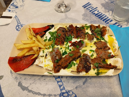 The kebab with yoghurt was dreadful, soo much yoghurt on top of soggy, burned pita. There were 12 fries and 12 pieces of kebab on top of it. Which meant you could get 12 bites of kebab in a whole main meal. It felt like an appetizer, one of the two bell peppers were cremated, not edible anymore.