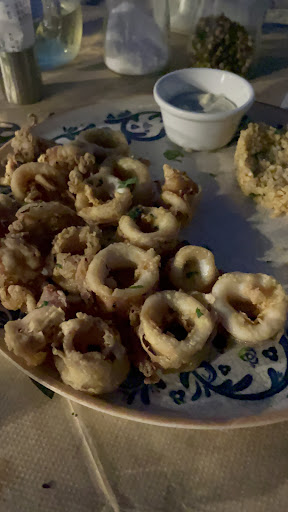 We tried the sun-dried octopus, fried squid, linguine with wild mushrooms, linguine with seafood in white sauce, and the Aiolos salad. They told us the squid was €18 instead of the €15 listed on the menu because it was “fresh today”- which made me question whether the seafood served on other days isn’t fresh. I had never doubted the freshness of seafood in Greece until that moment so it slightly shook my trust:)