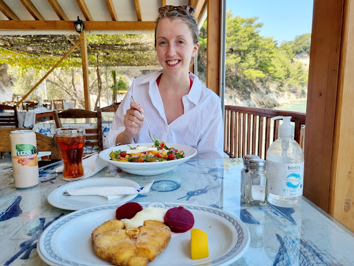 Hands down the best beach restaurant on Samos! The views are breathtaking, the water is not really cold - probably the only minor quip would be you need to wear beach shoes because of the rocky shore. I cannot describe how happy I am that I've chosen this place and not some other. I visited 3 times during my stay on Samos - for many reasons. The staff is absolutely brilliant - working hard all day so you can experience your best vacation. Big thanks to Julie and Hristina for being such amazing hosts ❤️ As for the food - it is just the best: from starters to main dishes and drinks. You should try some of their hightlights : pougakia (pouches of thin dough filled with cheese and red pepper with black sesame and deep fried, served with honey - absolutely unexpected taste) and pretty much everything on the fish fillet menu of the tuna steak was incredible. There's one more thing which is not on the menu - the stuffed onions - basically the top layer of an onion filled with rice and beef mince. It's similar to dolmades but a lot better. Definitely will visit again when...