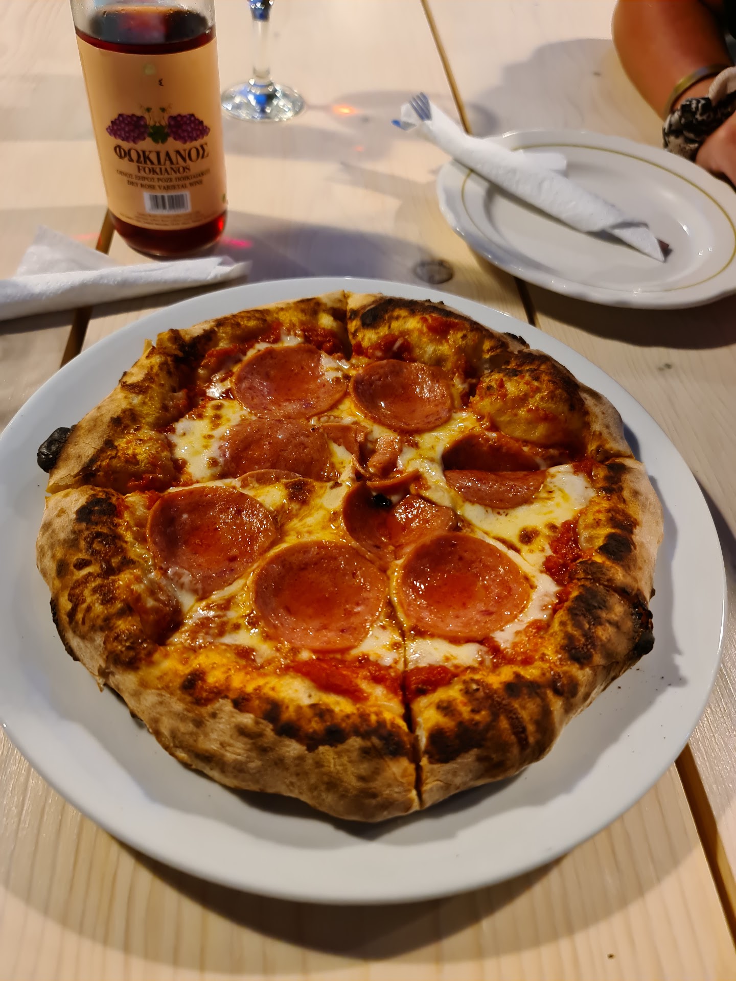 We originally planned to order Margherita, but to try something different, we went with the Samos Pizza. The difference was that it came with large slices of tomato on top. This was a bit disappointing, as the tomato slices covered the mozzarella, and we couldn’t really taste the mozzarella as much.