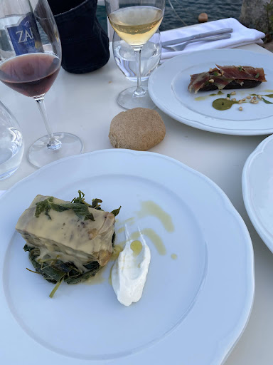 Beautiful location with a suberb view of Kokkari. A French Cuisine with local products. It is nice to see that on Samos there is a restaurant able to do different things with the available products on the island. Our starters were great (Ceviche of Seabream and Shrimps with Salami and smoked mayonaise). It was well prepaired and the products were of high quality. Portioning was nice. The main courses were ok. The balance in the dishes could have been better. The vegetable/meet ratio could improve and also the intensities of some products were too high for the volume that was on the plate (especially the pork dish). Same goes for the desserts. The taste is all nice, but the balance is missing. Bread is served free of charge, but there is no (salted) butter or olive oil served with the bread which is a missed opportunity. We asked for the wine list but although they had a wide variety of wines, there was no lost presented. That resulted in that we had no idea of the prices of the wines served. That is okay if the prices are in range of the local habbits, but that's not the case in this restaurant. We will come back here but hope there will be some...