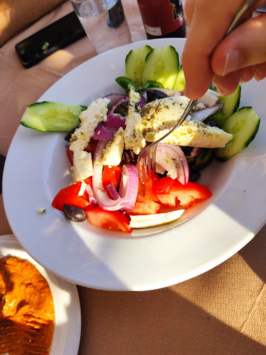 Eten op zichzelf is prima. Mooie locatie. Wel aan de dure kant. De menukaart die op google staat is niet meer up to date. Het is minder keuze (wat op zichzelf niet erg is), maar minder griekse opties. Wij hebben gekozen voor de fried calamari en de kip souvlaki (pork hadden ze niet). Het eten was lekker. We hadden er ook een portie tzatziki bij besteld, nooit gekregen. De serveerster was slecht aan te spreken en toen ik om de tzatziki vroeg, kreeg ik in de haast een bakje mayonaise op tafel gezet. Hierna is ze niet meer aanspreekbaar geweest. Daarnaast kwam de calamari als eerst. Ongv 40 min later kwam de souvlaki. Tussendoor hebben we meerdere keren gevraagd wanneer de souvlaki kwam, maar dat mocht niet baten. Er werd gezegd dat deze er zo aan kwam waarna je weer zat te wachten. Uiteindelijk niet samen met elkaar, maar apart van elkaar gegeten....... We stonden op het punt om weg te gaan zonder de souvlaki te hebben gekregen. Wij komen hier niet...