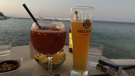 Read moreAmazing place with an fine view to the sea and the pier. Good selection of drinks, beers (most greek and some international labels), and wine. The greek beers are IPAs, stouts, saison, pilsners etc. The staff is very nice, and when you sit down you get water, nuts and a spear with...