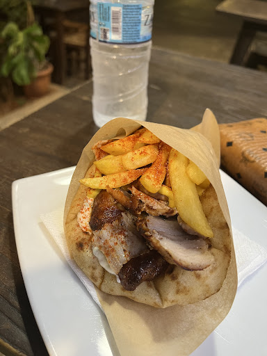 Given everything was closed in the vicinity we were kinda forced to go there. We ordered a greek salad and a souvlaki for each of us. As concern mine, was the most dry pitogyro i ever ate, i really struggled to eat some of it. At least the greek salad was decent. In general I'm not difficult with my food, i can eat everything at least once, their souvlaki belongs to that category, something not gonna eat again. Service was decent, the atmosphere was... Non existent, neither you should expect any, is not that kind...