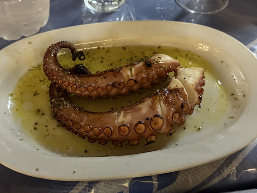 Food was genuinely amazing! The grilled shrimps were so flavoursome and great value as well, massive in size and massive in flavour! We also got the red snapper which was off menu, but amazing! The waiter was so lovely from the beginning and took us into the kitchen and showed us all the amazing fresh fish on offer which wasn’t advertised on the menu! The grilled octopus was also fantastic, full of flavour and a great portion size, every dish we got we were able to share between 4 people! We’ve only put 4 for atmosphere because of one specific, very noisy table, which had nothing to do with the restaurant itself, just about 20 loud Americans who decided to play a very loud game in the middle of dinner service! Other than that, it’s a fab location, right on the waterfront, fantastic, attentive service, lovely friendly people! Full on 5/5 stars, definitely a must-visit, best...