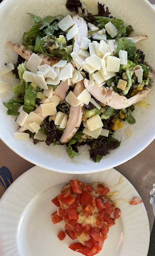 As for the food, I tried the feta and honey bruschetta, which was drowning in honey as if it were meant to be a dessert rather than an appetizer. The Caesar salad was more reminiscent of the beach than the kitchen: sand and bits of ham inside—really? Perhaps a culinary experiment in recycling?