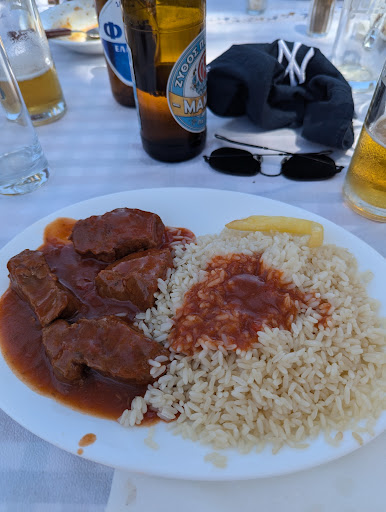 We had lunch on a warm day, and despite the hot weather, we were able to enjoy our meal under the shade or trees with a nice cooling breeze. Reasonably priced, generous portions and friendly staff. The slow cooked beef in tomato sauce, although the sauce was a bit sweet for my taste, it was very nice and soft overall. I particularly liked that I had the option to choose between rice and fries for the side. The moussaka (or pasticcio, I can't recall which) was of generous portion, but the bechamel sauce wasn't very tasty. The salad was the standard traditional Greek village salad made with fresh ingredients - very tasty.