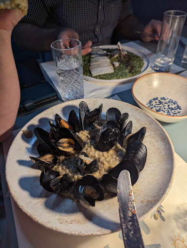 I really liked the food at Spirandreas and the view by the port made our visit very pleasant. Our waiter was very attentive and friendly. Everything was reasonably priced, however there were a few more expensive options for people looking to spend a little extra for something a bit fancier (e.g. ceviche, lobster, etc). I do not mean that in a bad way, it's actually a good thing that there are options for all budgets. I had the grilled octopus which was excellent, but the portion could have been slightly bigger. The risottos were both great, but the ones with clams was too salty. While I didn't take any pictures, the pork fillet and fried calamari were both excellent. Would highly recommend and it will probably be my first stop if I'm ever back in the area.