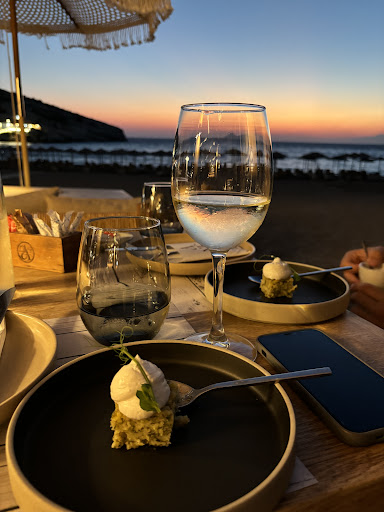 Tucked away on the stunning beach of Matala, this restaurant is nothing short of magical. From the moment we arrived, we were welcomed with warmth and genuine Cretan hospitality. The setting alone is breathtaking – dining just steps from the sea, with the sunset casting golden light over the waves and the iconic caves of Matala in the distance.