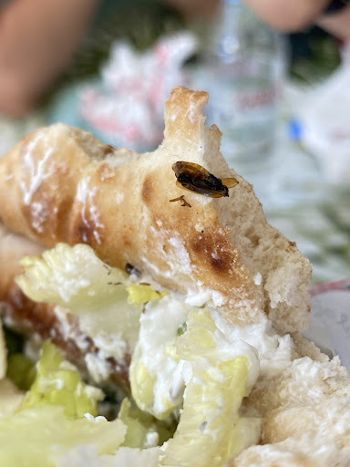 Bad experience with the pita gyros. I felt disturbed from the beginning, when the waiter came to take the order. I’ve ordered vegetarian gyros, and I’ve got with pieces of meat inside. I’ve choose to ignore it to not ruin my vibe. I continued to eat until I’ve seen this. When I went to ask what it this, the waiter got very angry and his attitude was very rude, and said to me “use your brain”. Fortunately, the lady (boss as she said) which was preparing the gyros, she was very kind and sad for the waiter for his attitude to the customers.
