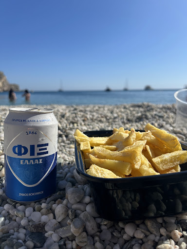 Read moreThis family-run taverna is just divine. The incredible setting of Agkali beach is matched by the charming and laid back service, with care and attention given even though the restaurant is continually busy. And the food...the first time was an afternoon post-swim bite, fried potatoes and the freshest fish, selected and grilled to perfection, with delicious chilled rose and beer....then, one of the extended greek family at the table next to us generously offered us some of their freshly made sweet honey and nut pastries their mother had made for their celebratory gathering - also incredibly delicious, but not on the menu! The following day we went back for greek salad, falling-off-the-bone roast goat and fried potatoes and some more delicious rose...and I don't know what happened after that cos I was in...