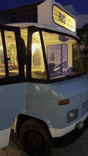The atmosphere is beautiful: the place is charming and unique, especially the bus on the terrace with tables inside, where you can even enjoy your meal inside the bus — such a special and memorable touch!