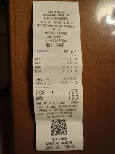 Read moreForeign tourists trap. Extremely expensive! 25€ when it used to be 15€ few months ago. Tiny portions of low quality frozen food! Some dishes were not available despite the already small selection on the menu. Beers are not included. Beware, fish with skin and bones. Uncooked and uncleaned shrimps!!! Crab salad is in reality crushed surimi in mayonnaise so no crab at all!!!!!! Tasteless fried mussels. Overcooked hard French fries. Oily spicy cheese. Uncooked calamari with the same almost inexistant coating as the fried mussels. Ridiculously tiny portion of skordalia. Paella Lidl style straight from the microwave. All the warm dishes served immediately after ordering so when were they cooked to be ready so fast??? Third world employees in the kitchen (do they work legaly?) Customers smoking just under the no smoking sign!!!!!! Please pay by card only if you want a receipt. The positive point is the service which is fast and polite but it is not enough to...