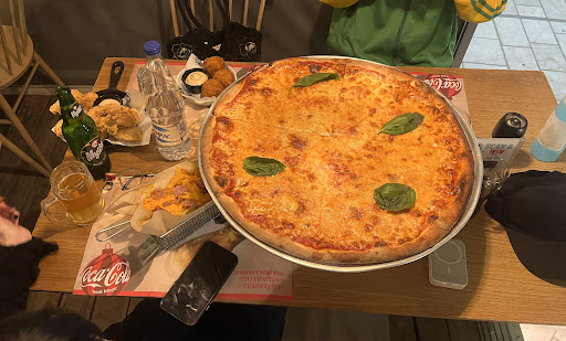Read moreΗ πίτσα που παρουσιάζει το Dumbo, είναι μεγάλη, πολύ μεγάλη. Το ζυμάρι ωριμάζει για 48 ώρες, ώστε να είναι αφράτο, και καλύπτεται με πλούσια υλικά. Δοκιμάσαμε Pepperoni με mix τυριών, marinara sauce, black garlic sauce, pepperoni Για να έχουμε πιο ολοκληρωμένη άποψη δοκιμάσαμε και ένα Steak n'Eggs flatbread με mix τυριών, black truffle sauce, tagliata, αυγά, φρεσκοτριμμένο μαύρο πιπέρι και σχοινόπρασο Θα βρεις American burger σε potato bun! Όπως το "Nashville’s Fried Chicken & Beef" με μοσχαρίσιο μπιφτέκι black angus, αμερικάνικο τηγανητό κοτόπουλο, μαριναρισμένο σε buttermilk και χειροποίητες πίκλες Μία διαφορετική πρόταση που επίσης πρέπει να ανακαλύψεις είναι τα σάντουιτς. Και εδώ γίνεται ένα πάντρεμα από τις δύο κουζίνες και δημιουργείται το "Meatball Parm Sandwich" με χειροποίητα κεφτεδάκια, λιωμένη mozzarella, τριμμένη παρμεζάνα και marinara sauce. Ταίριαξε τέλεια με ένα πλατό από διάφορα ορεκτικά. Ξεχωρίσαμε τα "Mac n cheese balls" , μεγάλες τραγανές κροκέτες γεμιστές με creamy mac n cheese. Και μια γλυκιά πίτσα "Sweet tooth", καραμελωμένη βάση πίτσας με πραλίνα σοκολάτας, τριμμένο Oreo, Maltesers, φράουλες, μπανάνα, marshmallows & salted caramel...