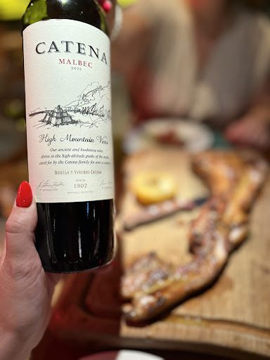 The food and drinks were very good. We shared a chicken Caesar salad (which is made with mixed greens) and then had the pork tomahawk and chicken skewer. They were huge and cooked to perfection, served on a butcher block. We could have easily shared one main dish as both were very generous.