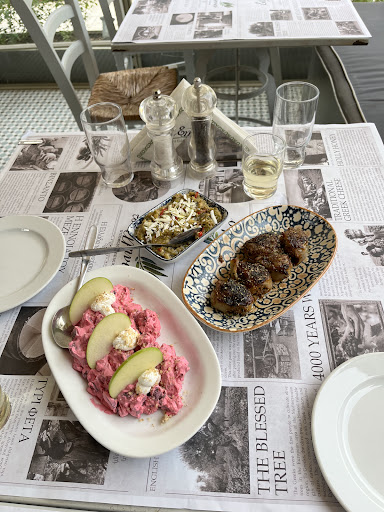 The lady who greeted and served us was very attentive, polite, and professional. We ordered kebab, meatballs, eggplant salad, and beet salad, along with their house white wine. The service time and presentation were good. The portion sizes were just right, neither too much nor too little. The prices were reasonable, not expensive. However, the food was unfortunately lacking in flavor. While each dish had a subtle, unique touch, these weren’t enough to make the food truly delicious. There are many other places in Athens that serve the same dishes with much better taste. We were disappointed.