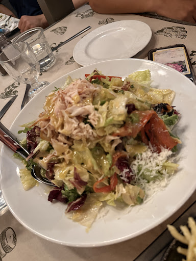 Read moreΣυγνώμη, που το λέω αλλά μία ακόμα κλασική περίπτωση επιχείρησης εστίασης που επενδύει αρκετά περισσότερο στο περιβάλλον αλλά λησμονεί σε κάποιο βαθμό ότι εν τέλει πρώτιστη σημασία έχει το φαγητό... Χωρίς βέβαια να μπορώ να αξιολογήσω εάν ήταν ποιοτικό (δεν έκανα και test ελέγχου υπολειμματικότητας πρωτεϊνών...) αλλά σίγουρα ήταν αδιάφορα, ‘άχρωμα’ και άγευστα (π.χ. σχεδόν καμένα μπιφτέκια, ούτε ζουμερά μέσα και χωρίς ιδιαίτερη γεύση παρότι είχαν και λαχανικά μέσα). Επίσης στο κομμάτι της εξυπηρέτησης/ service πελατών, ενώ υπήρχε θετική διάθεση, φάνηκε πως κάτι δεν έχει στηθεί καλά σε επίπεδο διαδικασιών -ενδεικτικό παράδειγμα ότι τραβούσαν τα πιάτα σχεδόν πριν καν τελειώσουμε (δηλαδή είχαν ακόμα φαγητό) ή/ και μήτε να έχουμε τοποθετήσει τα μαχαιροπίρουνα σε θέση αναμονής για το επόμενο πιάτο-.