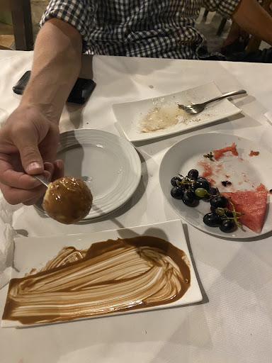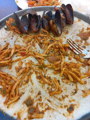 We paid €33 for a starter and two courses for 2. The starter (pork in vinegar) had a good seasoning but several pieces were dry and hard with a lot of fat. My friend's dish (grilled squid) consisted of a small tentacle at 11€ with only a small jar of lemon sauce on the side. As far as I was concerned, my dish was certainly not homemade (pasta with seafood), the sauce was probably from a pre-made jar and the seafood was super dry and rubbery, not as good as a frozen paella from Carrefour. Lots of big groups (Chinese and American), which leads us to think that this is just a good tourist attraction. In short, for a last restaurant in Crete, it's really...