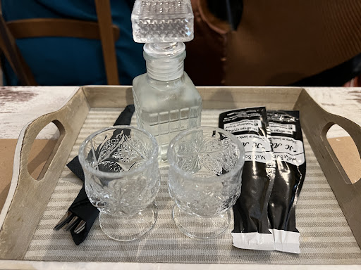 We ordered the taramosalata, marinated anchovies, pork liver and the dolmades. All was exquisite and they make it on the spot (you can even see the open kitchen). At the end we had not just one but 4 different desserts on the house and not just 1 but 2 bottles of raki! We truly felt like home here.