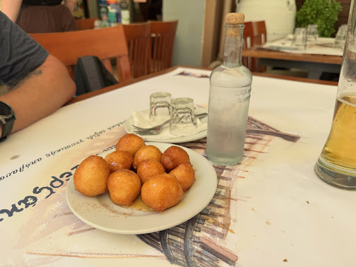 What was really nice was that when we asked for the bill, the lady surprised us with two pieces of honey cake and a small bottle of their homemade strong brandy. That made us very happy.