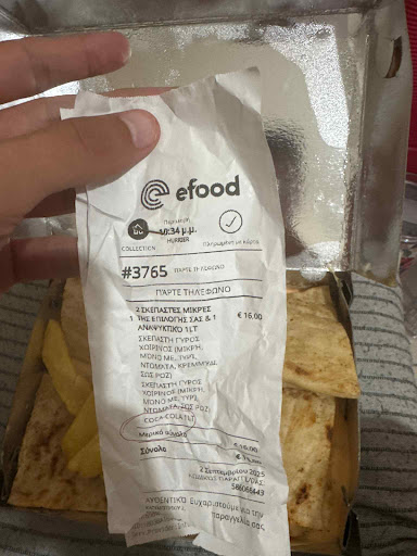 Read moreπαράγγειλα μέσο efood δυο σκεπαστες με γύρο χοιρινό μου ηρθε με οτι κρέας να ναι επιπλέον δεν ηρθε καν η κόκα κολα.Χρειαστηκε να περιμενω για να μου την φέρουν και οταν ξρθε και άνοιξα το πακέτο μου διαπίστωσα οτι ηταν λάθος το κρέας επικοινώνησα με το efood...και μου ειπαν οτι δεν μπορούν να επιστρέψουν χρήματα για φαγητό που εχει καταναλωθεί...ωστόσο κάθε πίτα ειχε μεσα ενα κομματάκι σουβλάκι και κρεμμύδι ενω στη δεύτερη πίτα οπως θα δείτε ειχα γράψει ΧΩΡΙΣ ΚΡΕΜΜΥΔΙ...έπρεπε δηλαδή να σας τα στειλω πίσω να ξαναστείλεις διανομέα για να παρω τα χρήματα πίσω ειλικρινά φαίνεται ο μη επαγγελματισμος και πως δε ξέρουν να διαχειρίζεται ενα πελατη που ταλαιπωρήσαν οι ίδιοι...ειλικρινά ΜΑΚΡΙΑ. Σημείωση γιατι οι άνθρωποι νομίζουν ειλικρινά οτι τρώμε σκουπίδια και οτι αυτο το φαγητό καταναλώθηκε με τέτοια εικόνα προφανώς και δεν το ακουμπήσαμε...αλλα οπως ειπα επαγγελματισμος δεν υπάρχει και φαίνεται ποσο γρήγορα και πως απαντάνε σε ενα πελατη που ειχε αρνητική εμπειρία από το φαγητό του...την άποψη μου την ειπα φωτογραφίες...