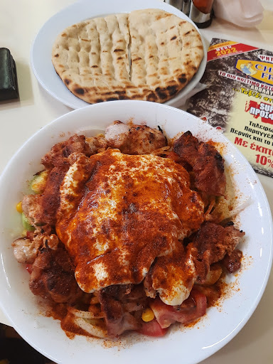 Πήρα αυτό το νέο πιάτο που βλέπουμε διαφημίσεις παντού. Την «μοσχοπιτα», την οποία έχουμε δει σε διαφήμιση να είναι γεμάτη γύρο και πατάτες. Καμία σχέση οι ποσότητες της διαφήμισης με τις πραγματικές. Μισή χούφτα πατάτες, ίσα ίσα γύρος για δείγμα. Ήθελα δυο για να χορτάσω! Εκτός αυτό η μοσχοπιτα ήταν άψητη και πραγματικά ΡΟΖ. Και οι δυο που πήρα ήταν έτσι, φαίνονται και οι δυο στις φωτογραφίες. ΣΗΜΑΝΤΙΚΟ! επισήμανα ξεκάθαρα ότι δεν θέλω κρεμμύδι σε κανένα από τα δυο τυλιχτά. Όπως φαίνεται και στις φωτογραφίες ήταν γεμάτο κρεμμύδι σε σημείο που η μπουκιά σου τραγανιζε από το κρεμμύδι ενώ περίμενες να φας λίγο γύρο κάποια στιγμή. Ζήτησα όχι κρεμμύδι και ήταν γεμάτα και τα δυο. Ενώ το επισήμανα γράφοντας με κεφαλαία (πουθενά κρεμμύδι παρακαλώ), υπήρχε κρεμμύδι παντού έτσι ώστε παραλίγο να συμβεί πρόβλημα λόγο αλλεργίας στο παιδί μου. Απαράδεκτοι και πάλι απαράδεκτοι. Αδιέξοδο ο πονοκοιλος. Έχω ξαναπάρει δεκάδες φορές από εκεί και με πιάνει η κοιλιά μου κάποιες φορές αλλά το αγνοώ διότι εντάξει… λογικό σε κάποια πλαίσια… αλλά όταν είδα αυτό που φαίνεται και στις φωτογραφίες θα καταλάβετε ότι η ποιότητα πέφτει κάτω από το μηδέν. Εκτός αυτού η παραγγελία άργησε παραπάνω από τον εκτιμώμενο χρόνο για περίπου 15 λεπτά. Τι να πω… το μαγαζι κάνει καλό κοτόπουλο και εκεί...