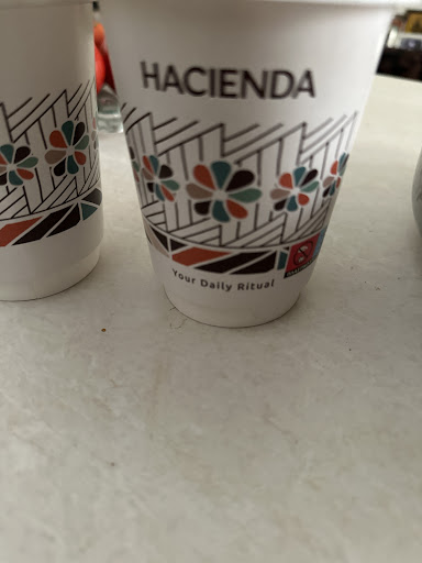 They should default to reusable glasses and mugs for customers sitting in Hacienda.