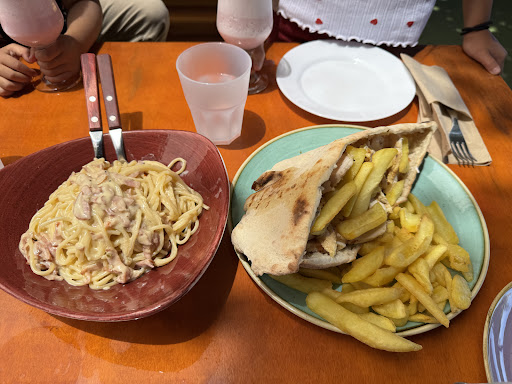 Read moreΜεγάλος παιδότοπος αλλά πολύ λίγες κοπέλες για τόσα πολλά παιδάκια και ο κανόνας χωρίς παπούτσια στο παιδότοπο ποτέ δεν εφαρμόζετε όλοι οι γονείς μπαίνουν μέσα με τα παπούτσια με αποτέλεσμα το ψεύτικο γκαζόν( για εμένα θα έπρεπε να αντικατασταθεί με κάποιο τάπητα που μπορείς να τον σφουγγαρίζεις για να απολυμαίνεται και να μην μπαίνουν οι γονείς με τα παπούτσια μέσα να βάλουν κάποιο πορτακι όπως έχουν άλλοι παιδότοποι στο Ηράκλειο) να είναι πάντα βρόμικο να κρατάει μέσα μικρόβια και η κάλτσες των παιδιών να γίνονται μαύρες ! Μια ανακαίνιση και του παιδότοπου αλλά και του καθιστικού θα ήταν ότι πρέπει !! Οι καρέκλες είναι παντού διαφορετικές, πολύ κακό σχεδιασμένες και άβολες με αποτέλεσμα το μόνο άνετο σημείο για να κάτσεις ώρα η να κανείς γενέθλια είναι οι 6 καναπέδες που διαθέτει το κατάστημα. Το φαγητό είναι πολύ ωραίο και οι εξυπηρέτηση επίσης ! Είναι ένα μέρος που προτιμάμε συχνά με τον άντρα μου και αρέσει πολύ στον γιο μας για αυτό και προτείνω κάποιες...
