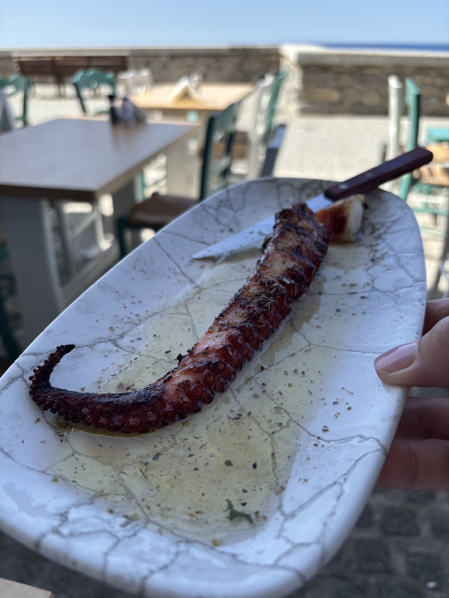 We had an absolutely amazing experience at Kastella Seafood Restaurant in Heraklion. The food was simply out of this world – we started with a classic Greek salad and some fries that were just perfect. Then came the shrimp tempura – light, crispy, and full of flavor – followed by tender, perfectly grilled octopus that truly melted in your mouth. One of the highlights was the zucchini, cut into thin strips and fried in a delicious coating – we were already full, but we couldn’t stop eating!