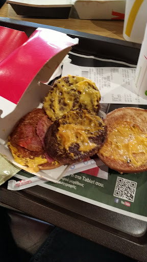 I ordered the McBacon, I asked the seller what is the size of the whole hamburger and she told me that it was regular, the size of the patties were seem regular as well at the screen that was on the wall, when I got my meal I was surprised to see that the patties were se thin that I thought it was one pattie, and the whole sandwich was at size of big Mac, not the regular hamburger, also it came with 2 pieces of bacon barely at the size of my finger together, I want also to to say that the seller was very unpleasant and rude, to sum up I'll say that my entire experience was undelightful and disappointing