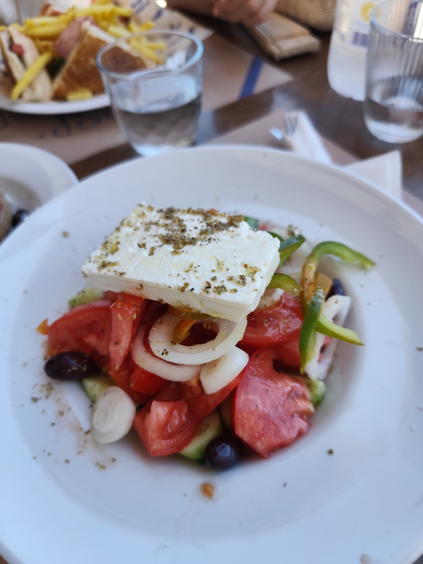 Called in as we were desperate for a drink after visiting Knossos Palace, ended up staying for lunch and were pleasantly surprised. Had a caesar salad, Greek salad and cretan spinach pie, all 3 of which were very good and reasonably priced, especially given the location, just across the road from the car park for the palace. Also had the cleanest, freshest toilet I've been in on Crete! Only slight fly in the ointment was we said we'd pay by card but the young lad serving us (owner's early teens son probably) misheard us and brought a bill for cash, which we didn't have enough of to pay. Owner got a bit stroppy, partly at us and partly at his 'son', as he said he'd have to pay 2...