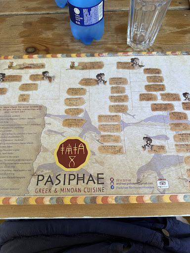 The decor blends natural wood with airy open space, and the placemats feature Minoan history and Linear B script, tying in perfectly with the cultural experience of Knossos. It’s clear the owners take pride in every detail—from the food to the atmosphere.